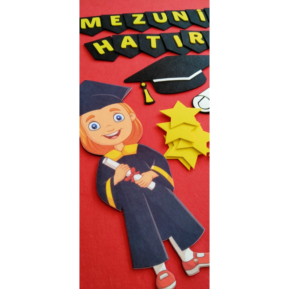 Tamamı kalın keçeden yapılmış olan mezuniyet hatırası için hazırladığımız pano.