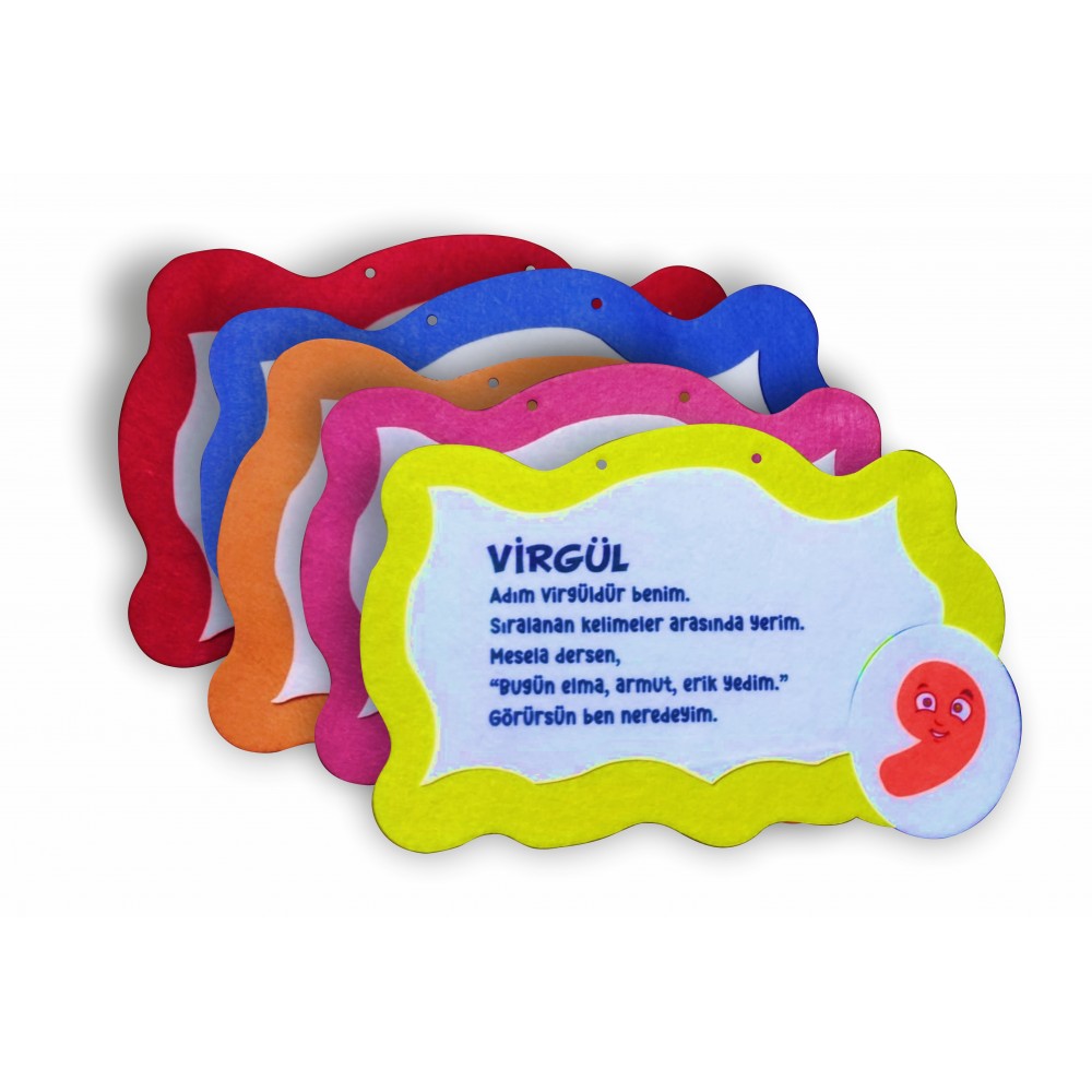 Noktalama İşaretleri Keçe Sınıf Panosu, Akılda kalıcı anlatımıyla noktalama işaretlerinin görevlerini, anlamlarını öğrencilerinize oyun tadında öğretebileceğiniz, aynı zamanda sınıf panosu olarak kullanabileceğiniz bir materyaldir.
